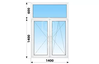 Двухстворчатое пластиковое окно с глухой фрамугой 1400x2000 П-ПО