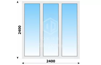Трехстворчатое пластиковое окно 2400x2400 Г-Г-Г